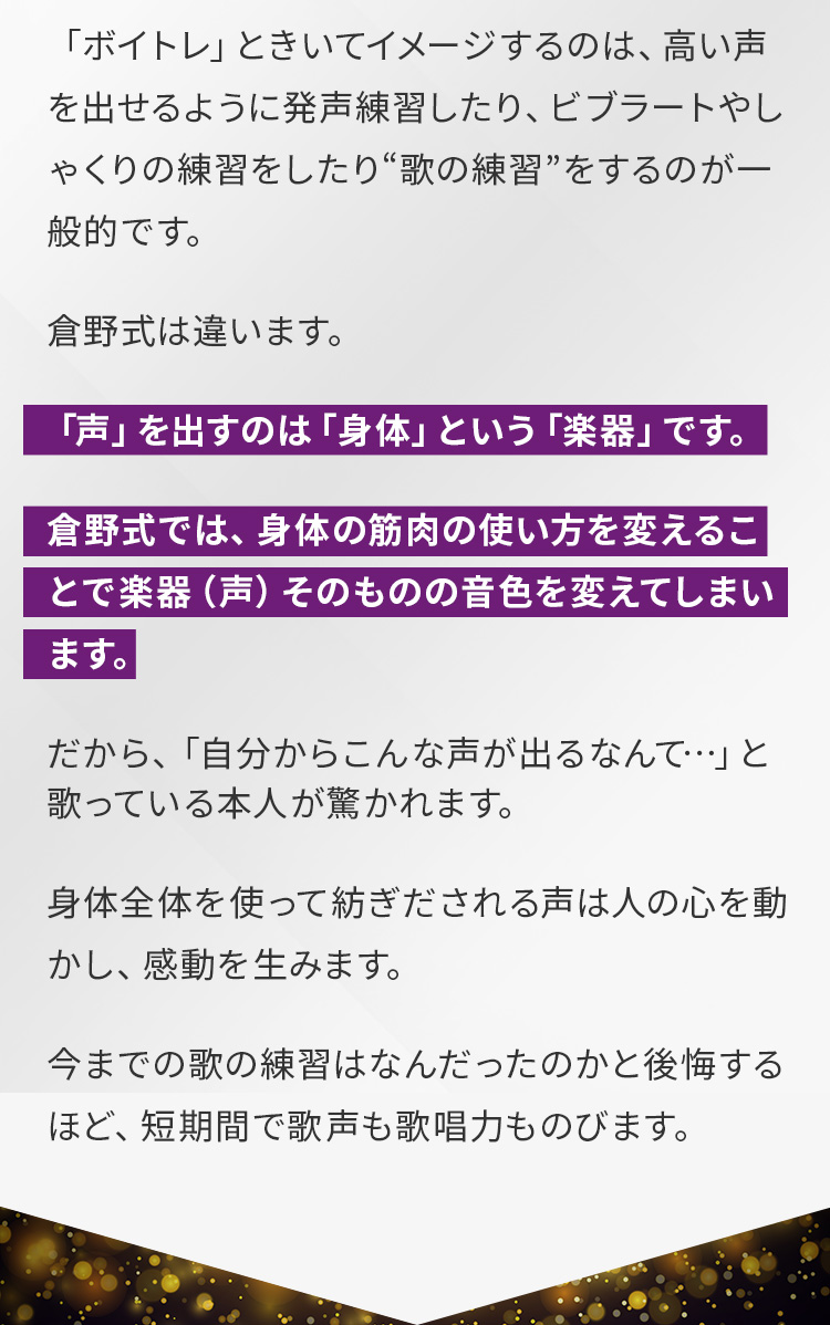 倉野式は普通のボイトレ ”では、ありません”
